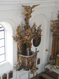Der Kirchenraum in seiner jetzigen Gestalt wurde hauptsächlich in den Jahren 1674 bis 1680 von dem Baumeister Georg Danner aus Unterbissingen geschaffen. Im 18. Jahrhundert wurde die Kirche im Inneren neu gestaltet. Die farbenprächtigen Decken- und Wandgemälde stammen von dem genialen Maler Johann Baptist Enderle aus Donauwörth. Der Hauptaltar und die beiden Seitenaltäre sind Arbeiten von Franz Henle aus Utzmemmingen, die zahlreichen großen und kleinen Holzplastiken sind Werke des bedeutenden Bildhauers Johann Georg Bschorer aus Oberndorf.